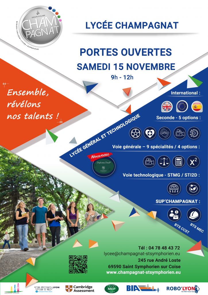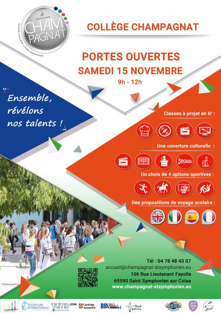 Nous sommes ravis de vous accueillir samedi 15 novembre prochain, de 9h à 12h, pour venir à la rencontre de nos équipes et de nos élèves afin de découvrir les projets et propositions pédagogique du Collège et du Lycée.