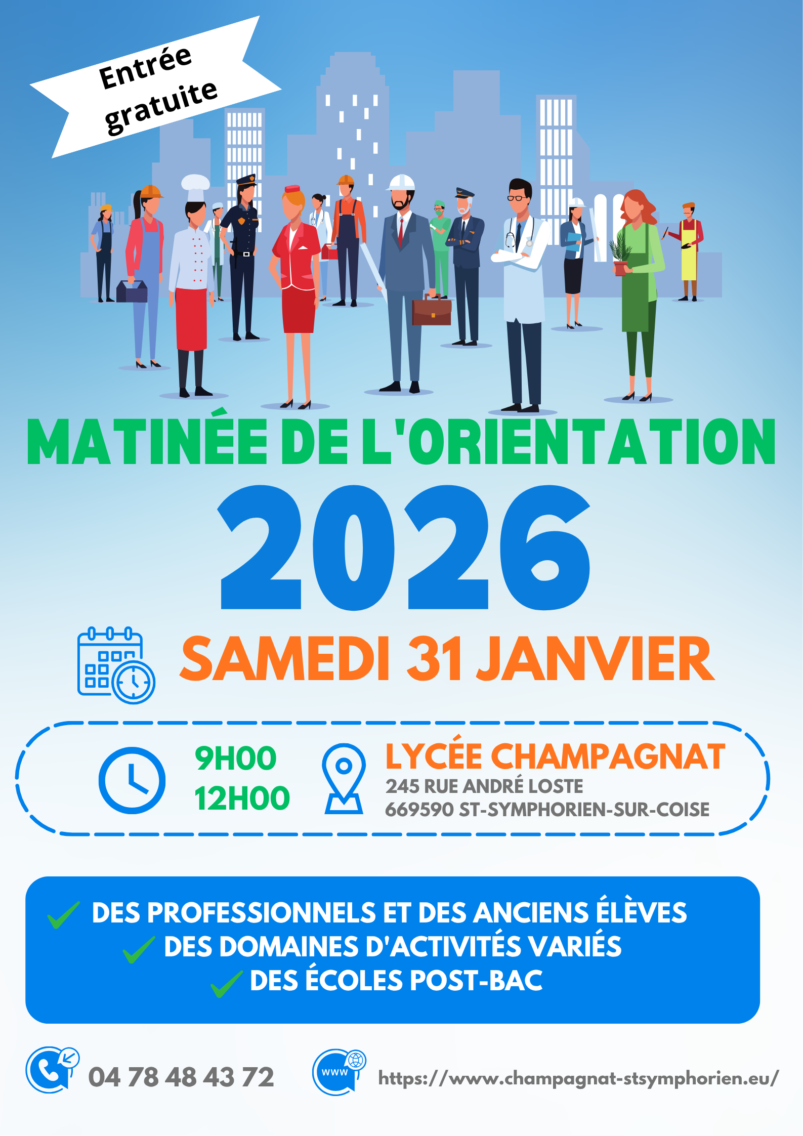 💥 📣 Samedi 31 janvier 2026 - Matinée de l'Orientation Champagnat (Forum des Métiers / Matinée des anciens élèves) avec plus de 150 participants : professionnels de tous domaines, étudiants et anciens élèves de Champagnat en cours de cursus, écoles post-bac... Soyez les bienvenus ! ‼️ 🏫